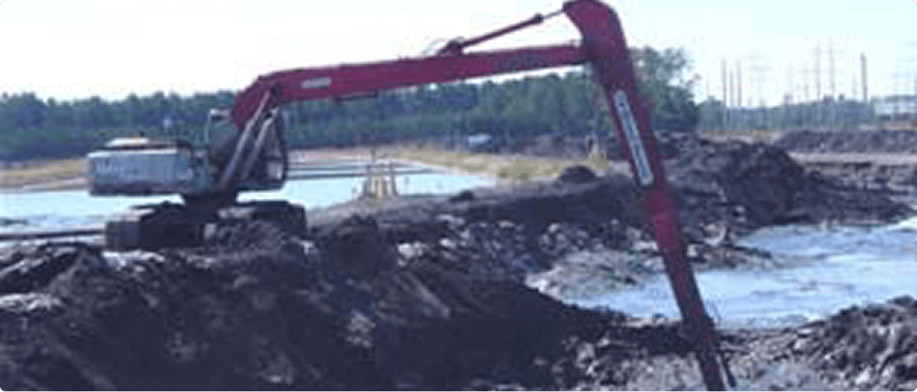 SBX excavated bottom ash from an active ash pond and transported material to an on-site monofill constructed for permanent disposal. Excavation was performed from the perimeter berm using long-reach equipment, with material staged for gravity dewatering prior to haul. Moisture content was verified in the field to meet placement requirements, and ash was placed and compacted in controlled lifts.